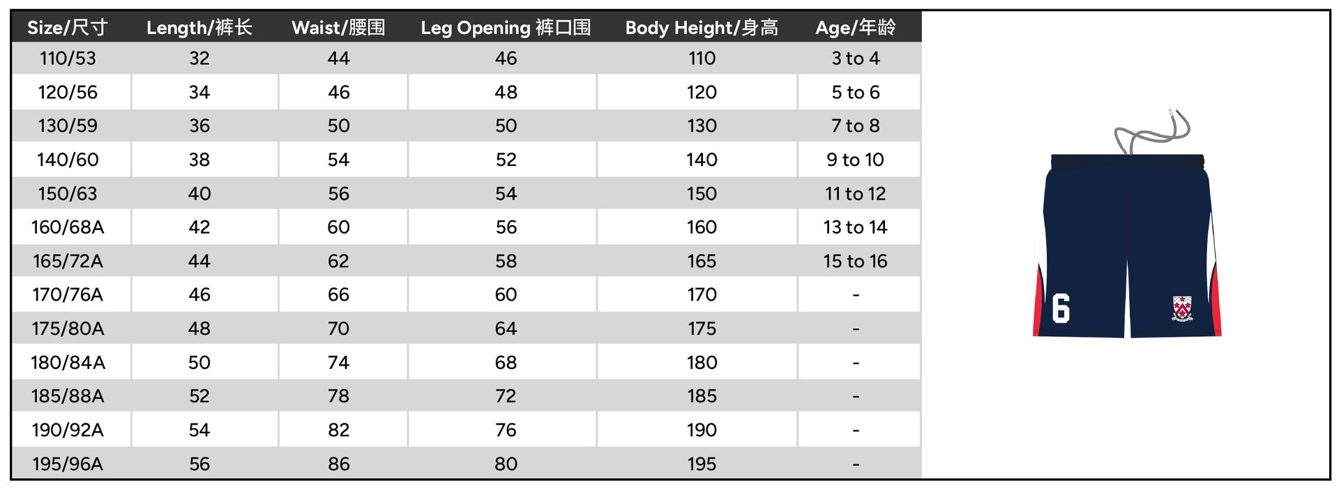 Size 110 or 120 or 130 or 140 or 150 or 160 or 165 or 170 or 175 or 180 or 185 or 190 or 195