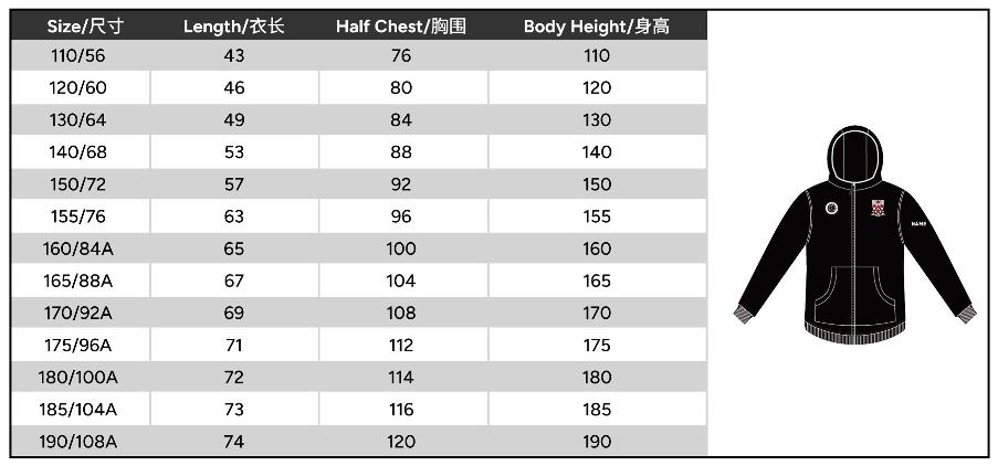 Size 120 or 130 or 140 or 150 or 155 or 160 or 165 or 170 or 175 or 180 or 185 or 190
