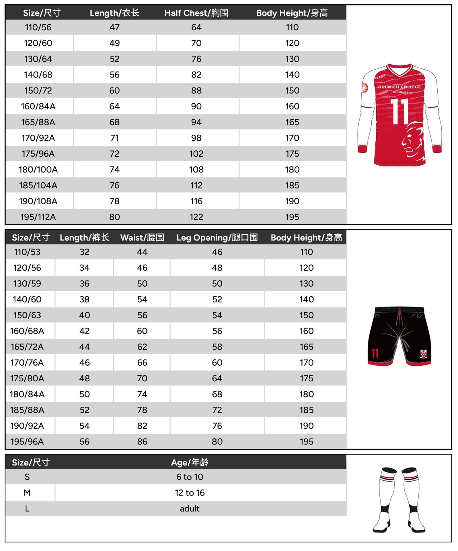 Size 110 or 120 or 130 or 140 or 150 or 160 or 165 or 170 or 175 or 180 or 185 or 190 or 195
