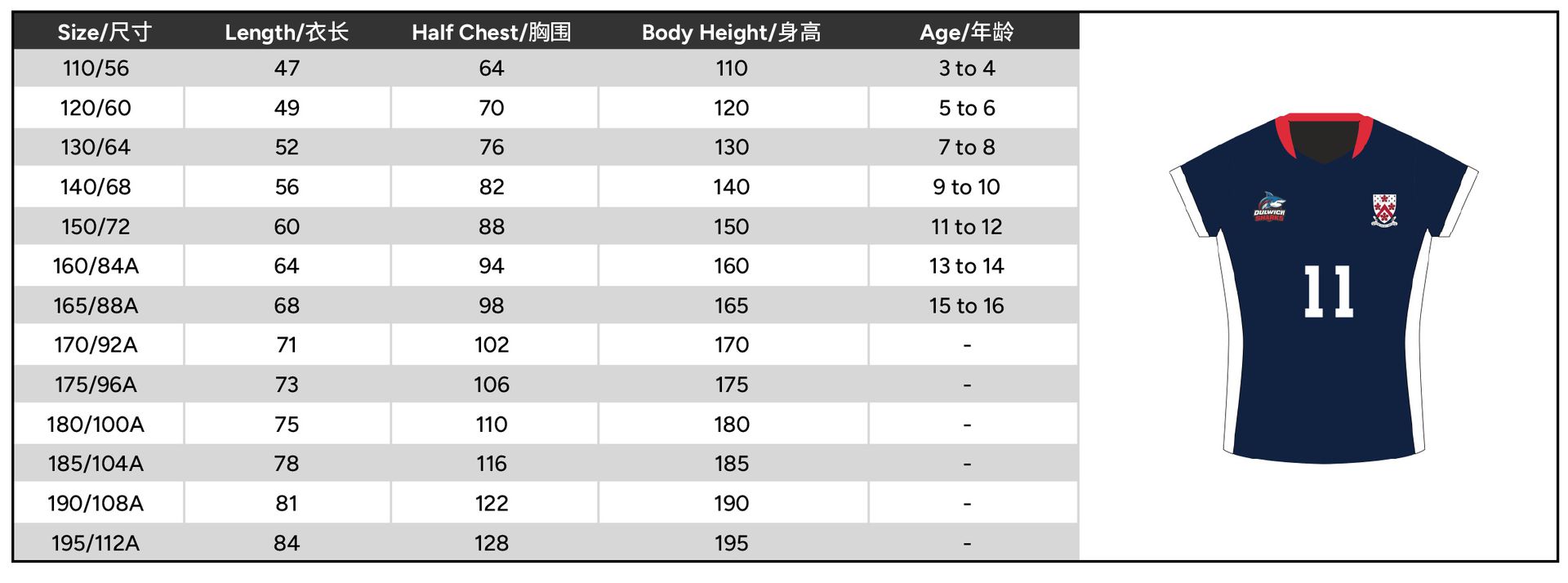 Size 110 or 120 or 130 or 140 or 150 or 160 or 165 or 170 or 175 or 180 or 185 or 190 or 195