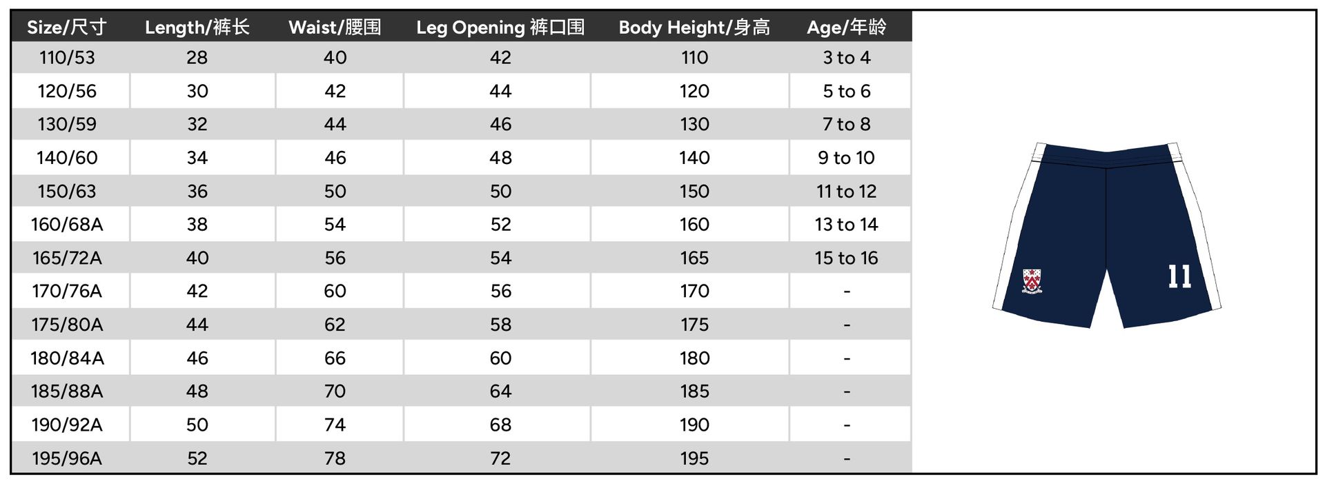 Size 110 or 120 or 130 or 140 or 150 or 160 or 165 or 170 or 175 or 180 or 185 or 190 or 195