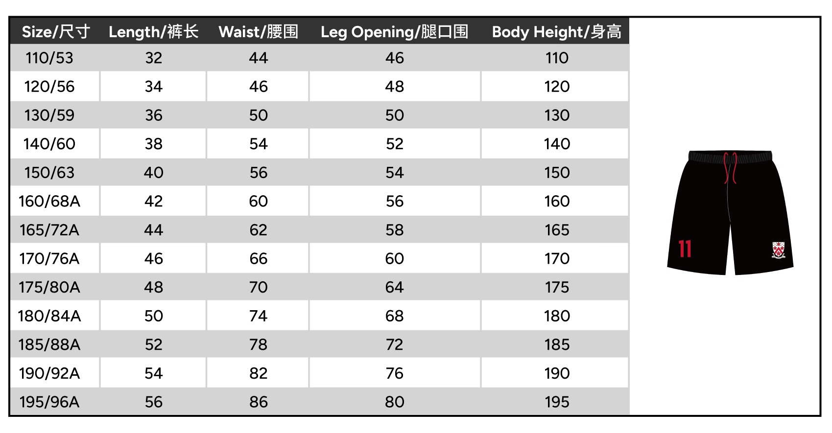 Size 110 or 120 or 130 or 140 or 150 or 160 or 165 or 170 or 175 or 180 or 185 or 190 or 195