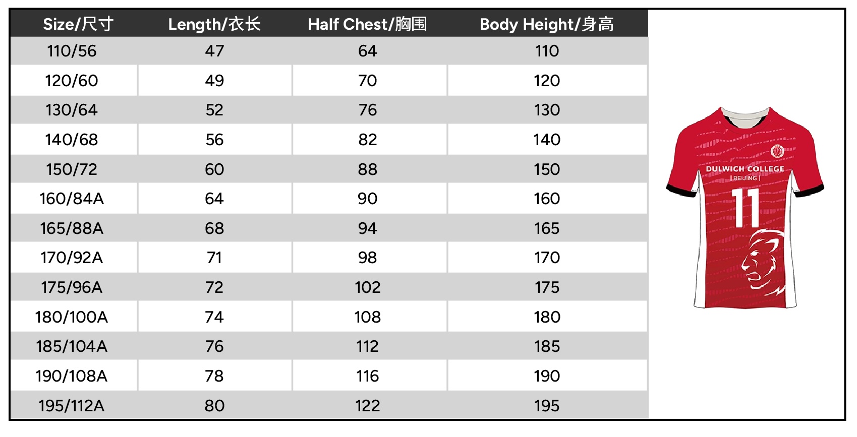 Size 110 or 120 or 130 or 140 or 150 or 160 or 165 or 170 or 175 or 180 or 185 or 190 or 195