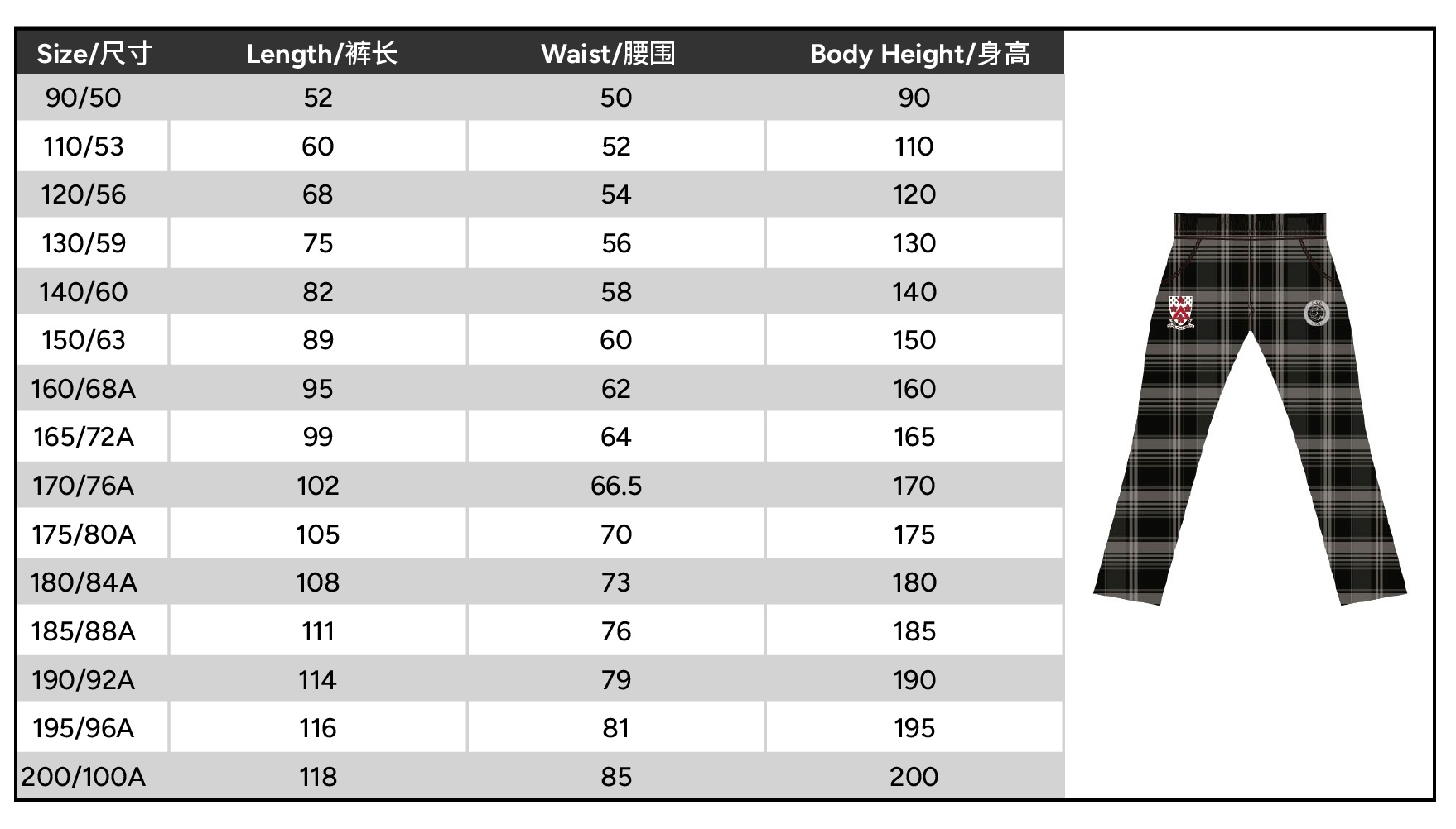 Size 90 or 110 or 120 or 130 or 140 or 150 or 160 or 165 or 170 or 175 or 180 or 185 or 190 or 195 or 200
